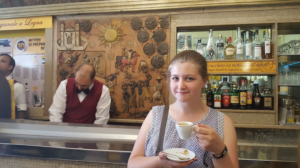 A guide called Rita took us on a tour around different parts of the city, such as the Roman Forum, The Constantine Arch and the famed Colosseum. We also went into the Pantheon. The Pantheon is a big monument that is one of the best preserved ancient buildings in the world. It is truly beautiful if you get to visit. Now here comes the tasty bit hehe. Rita the tour guide took us around different areas tasting coffee and tiramasu.