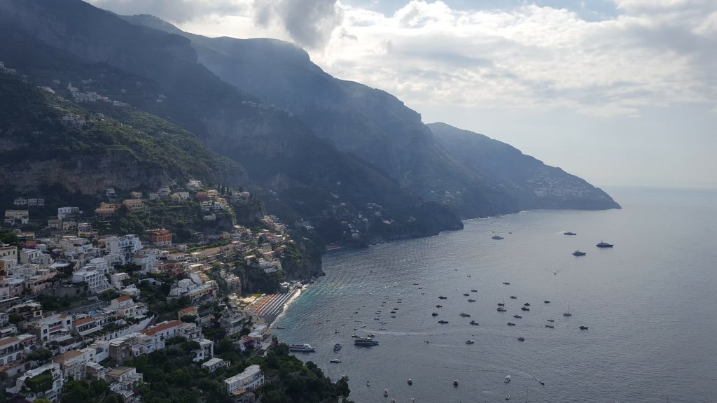 Our new tour guide Laura, (pronounced Low-ra), took us to visit Positano on the Amalfi coast. It was gorgeous! The sea was glistening and all of the coast line was gleaming. All the different colours of the various houses, blues, yellows and oranges.